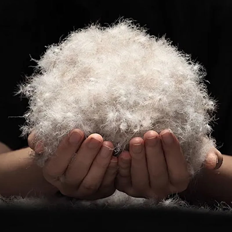 Vi velger de dunproduserende kjerneområdene på gråandens mage, nakke og vinger, og behandler dem gjennom en raffinert kjemmeprosess for å beholde den naturlige "rørdunblomst"-strukturen fullstendig. 90 % av fyllingen er grå andedunfiber med høy renhet, hvis sfæriske overflate er fordelt med et tett nettverk av mikronstore trekantede porer, som danner et luftisolasjonslag med dynamisk temperaturregulering. Når omgivelsestemperaturen svinger, utvider eller trekker dunfibrene seg automatisk sammen med endringer i kroppstemperatur, og absorberer effektivt de varme og fuktige gassene som slippes ut av menneskekroppen, samtidig som de effektivt blokkerer infiltrasjonen av kald luft fra utsiden, og oppnår nøyaktig temperaturkontroll døgnet rundt. Sammenlignet med vanlige fjærfyll har den naturlige animalske proteinfiberen til grå andedun bedre luftighet og spenst. Samtidig som den gir effektiv varmeoppbevaring, reduserer den vektbelastningen av klær betydelig, og sikrer at brukeren får en komfortopplevelse på profesjonelt nivå.